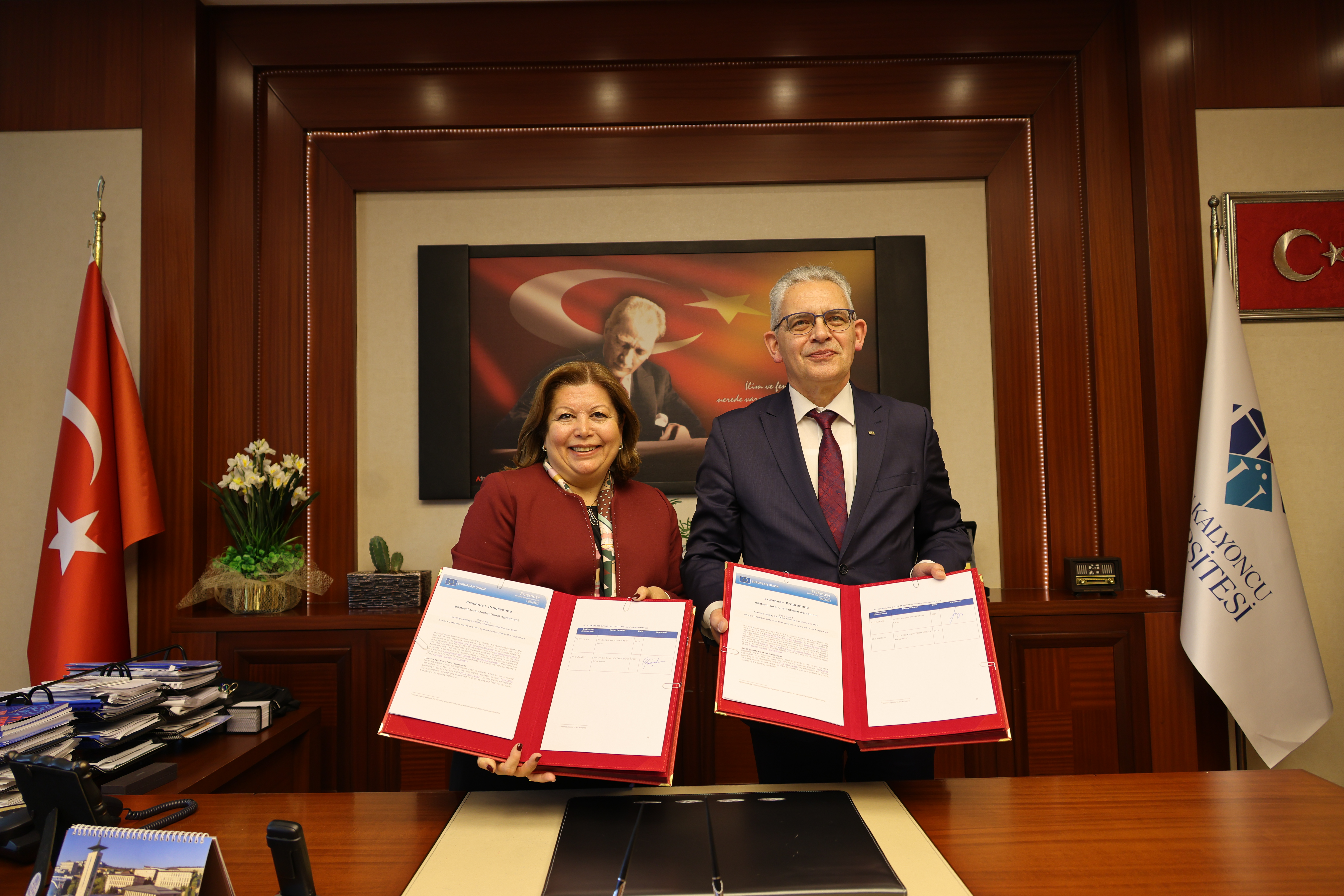 The signing ceremony, held at HKÜ, was attended by Acting Rector Prof. Dr Gül Rengin Küçükerdoğan, Rector of the University of Zielona Góra Prof. Dr Wojciech Strzyzewski, HKÜ Secretary General Ümit Şahnaoğlu, Honorary President of the University of Zielona Góra Katarzyna Lasinska, HKÜ International Relations Coordinator İhsan Kuyumcu, HKÜ Erasmus+ Institutional Coordinator Lecturer Simge Yılmaz, and Erasmus Institutional Coordinator of the University of Zielona Góra Prof. Dr Marek Smoluk.