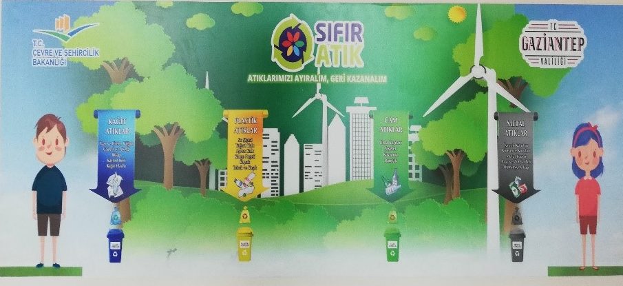 Türkiye Cumhuriyeti Çevre ve Şehircilik Bakanlığı tarafından tüm devlet daireleri ve özel kuruluşlar için “sıfır atık” adı altında kurumlar bünyesinde oluşacak atıkları en aza indirmeyi hedefleyen bir proje yürütülmektedir. HKÜ de bu proje kapsamında çalışmalarını başarıyla uygulamaktadır. Aşağıdaki şekilde tüm atıklarla birlikte kağıt ve plastiğin de ayrı toplanması ve geri dönüştürülmesi amacıyla binaların her katında asılı bulunan afiş yer almaktadır.
